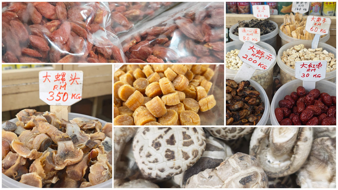 The prices shown (RM or Ringgit Malaysia) are typically quoted per kilogram (KG). In Penang’s markets, you’ll notice a vast range—from RM 30 for basic red dates to over RM 1,200 for high-grade fish maw—reflecting the rarity and “grade” of these traditional delicacies.